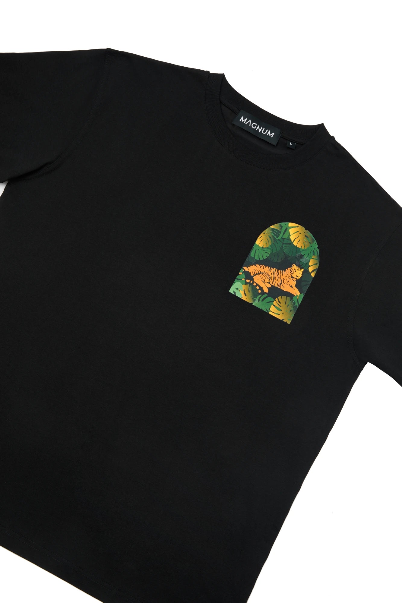 Elevate your day-to-day look with the bold and eye-catching design of this t-shirt. Adorned with a striking Raptor tiger print on both the front and back, this crew neck shirt features short sleeves and a comfortable regular fit.
